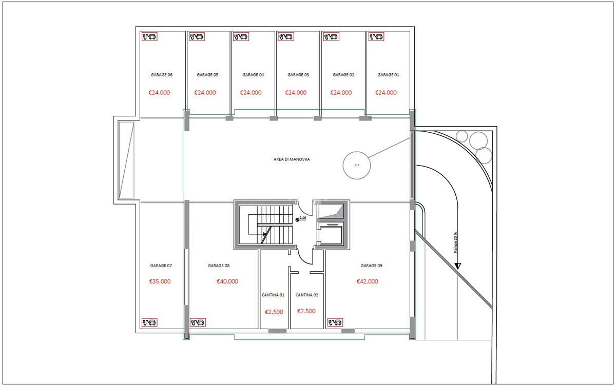 Disponibili a parte cantine, garage e posti auto di varie metrature.